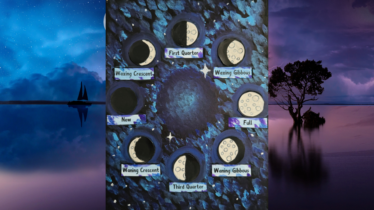 Explore drawing, painting, and mixed media while diving into topics like rockets, moon phases, cosmic textures, aliens in Renaissance portraits, and even designing a board game.